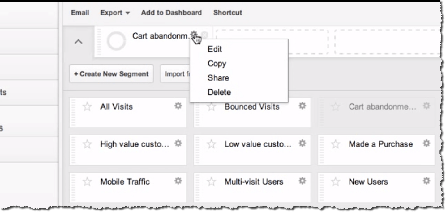 One of my own favourite use cases for the new segment builder is for cart abandonment analysis. In the following screencast I run through the process for creating two different types of cart abandonment segments.