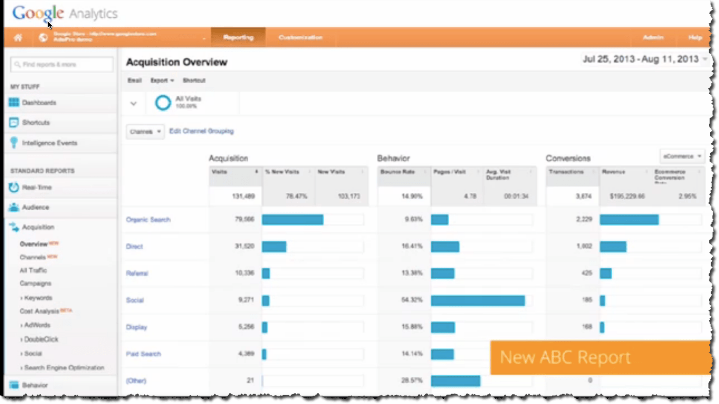 The Traffic Source reports are undergoing a complete revamp in line with a name change to ‘Acquisition’. The new Acquisition report category will aim to make the data more intuitive and group metrics into 3 key groups: acquisition, behaviours and conversions (or ABCs). The following sneak preview was shared on the official GA blog.