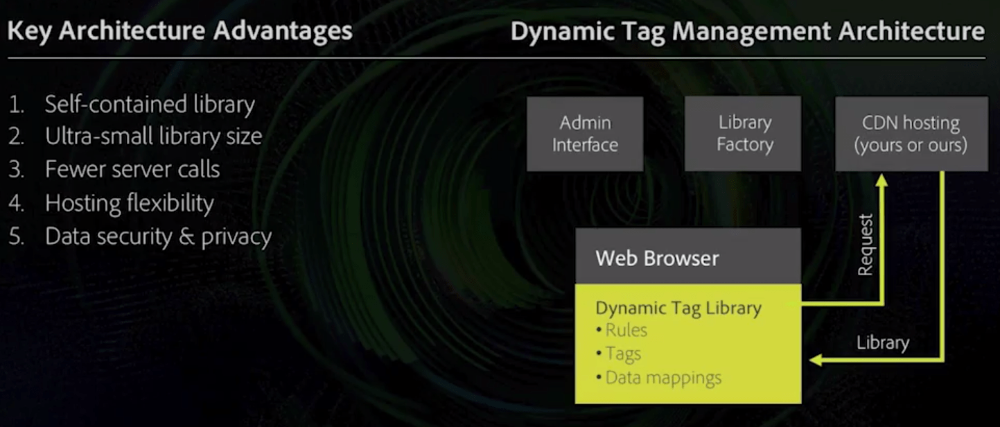 As good introduction to the tools itself, below there’s a useful overview of Adobe’s Dynamic Tag Management architecture, which is from their learning resource pages, which I highly recommend reading.