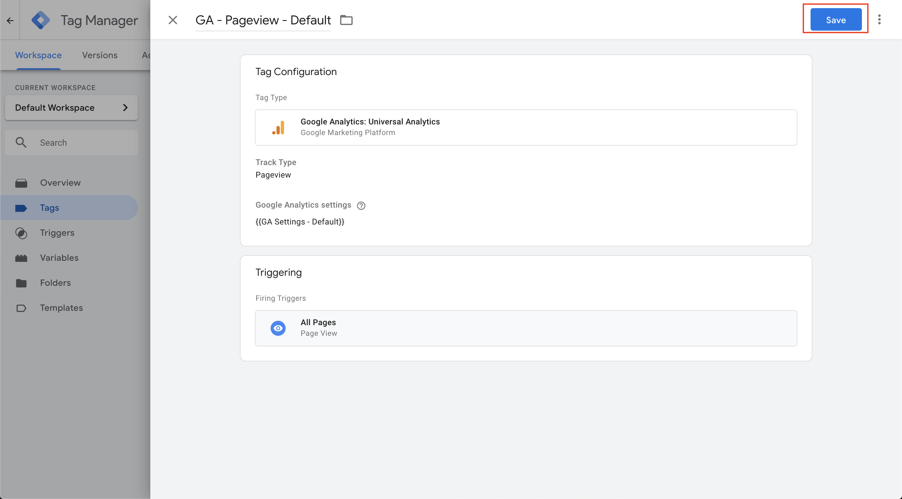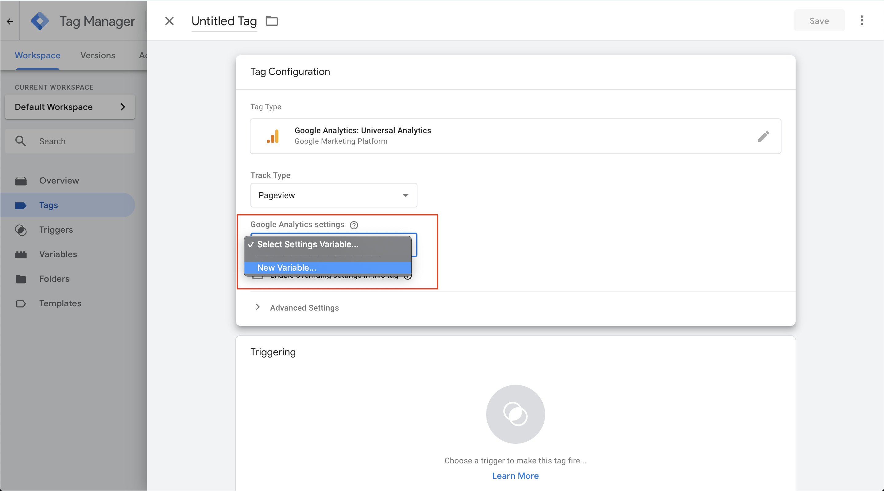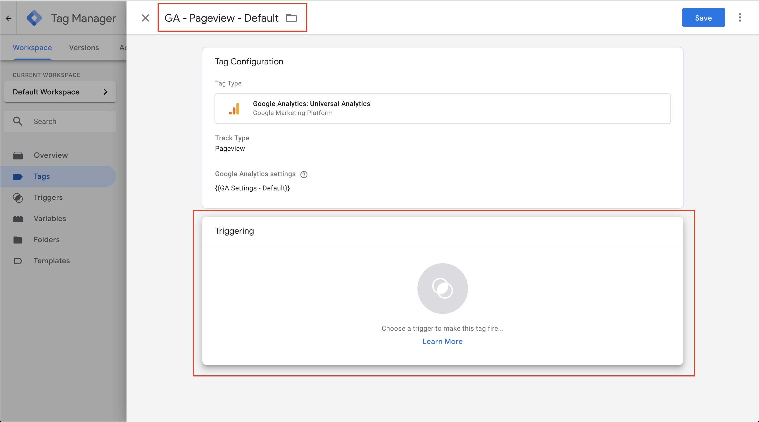 That's all the configuration we need to do for this tag's settings for the time being!