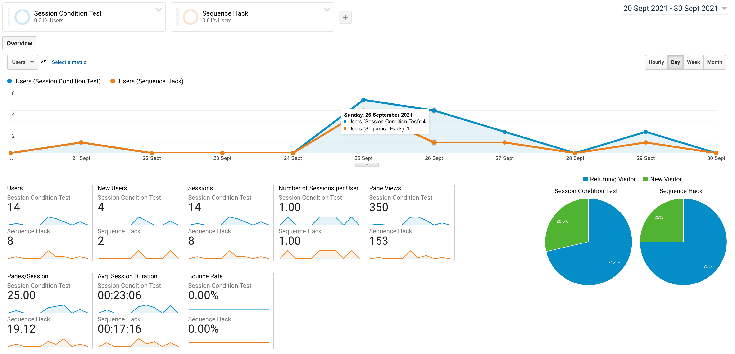 Below are the results of the two segments we have created: the incorrect condition-based segment and the correct sequential segment.