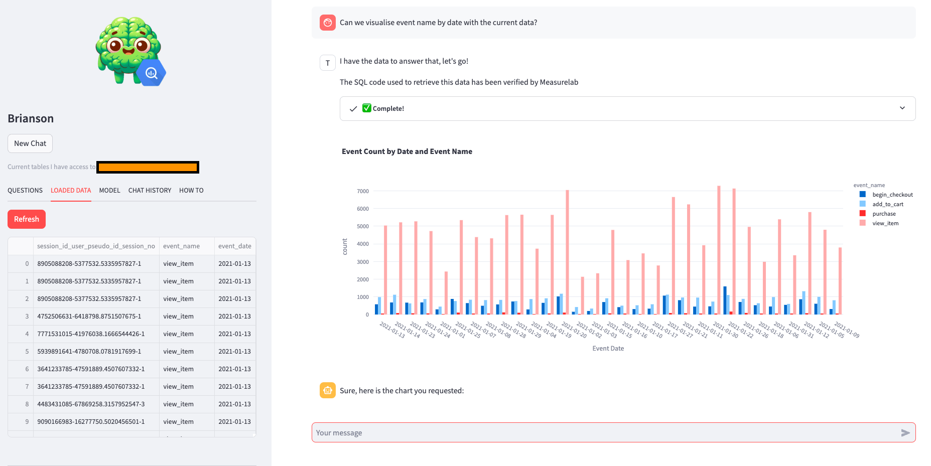 All of this meant we now had access to models from multiple companies; Anthropic, OpenAI and Google. It meant we could build our own tools and access a wealth of community built tools, giving Brian new and exciting capabilities (search, visualisation, API connections). In came streaming of responses for the first time, making interaction with Brian much more conversational and satisfying.
