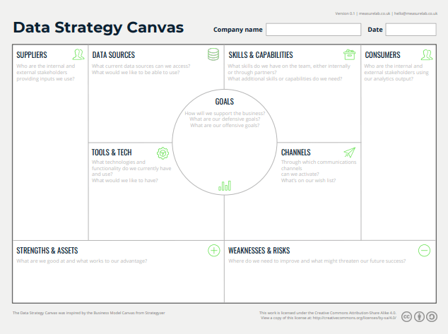 Anyway, we’ve found that a Data Strategy Canvas such as this can really useful in asking those early questions.
